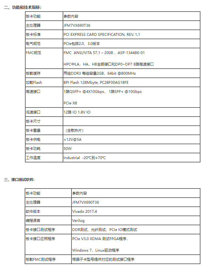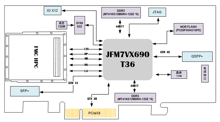 标签: JFM7K325T板卡, 国产化板卡, 软件无线电处理平台, 图形图像硬件加速器, JFM7VX690T板卡