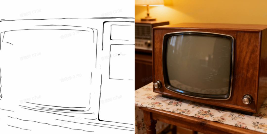 prompt:参考线稿图,生成一台老式电视机