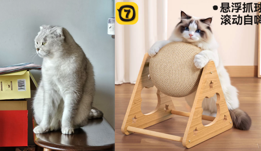 让第一张图的猫去玩第二张图的猫玩具