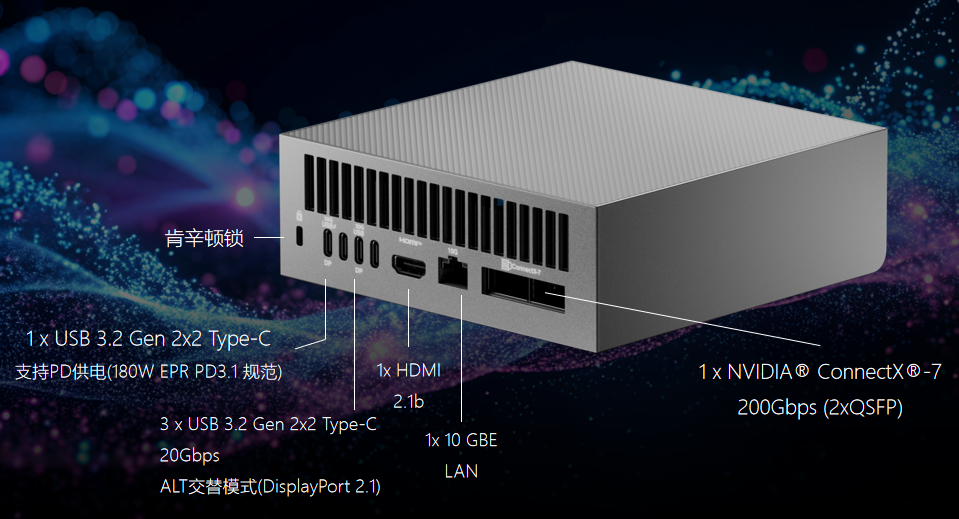在150×150×51mm的紧凑机身中,GX10通过精密布局实现了接口的极致集成与性能突破: