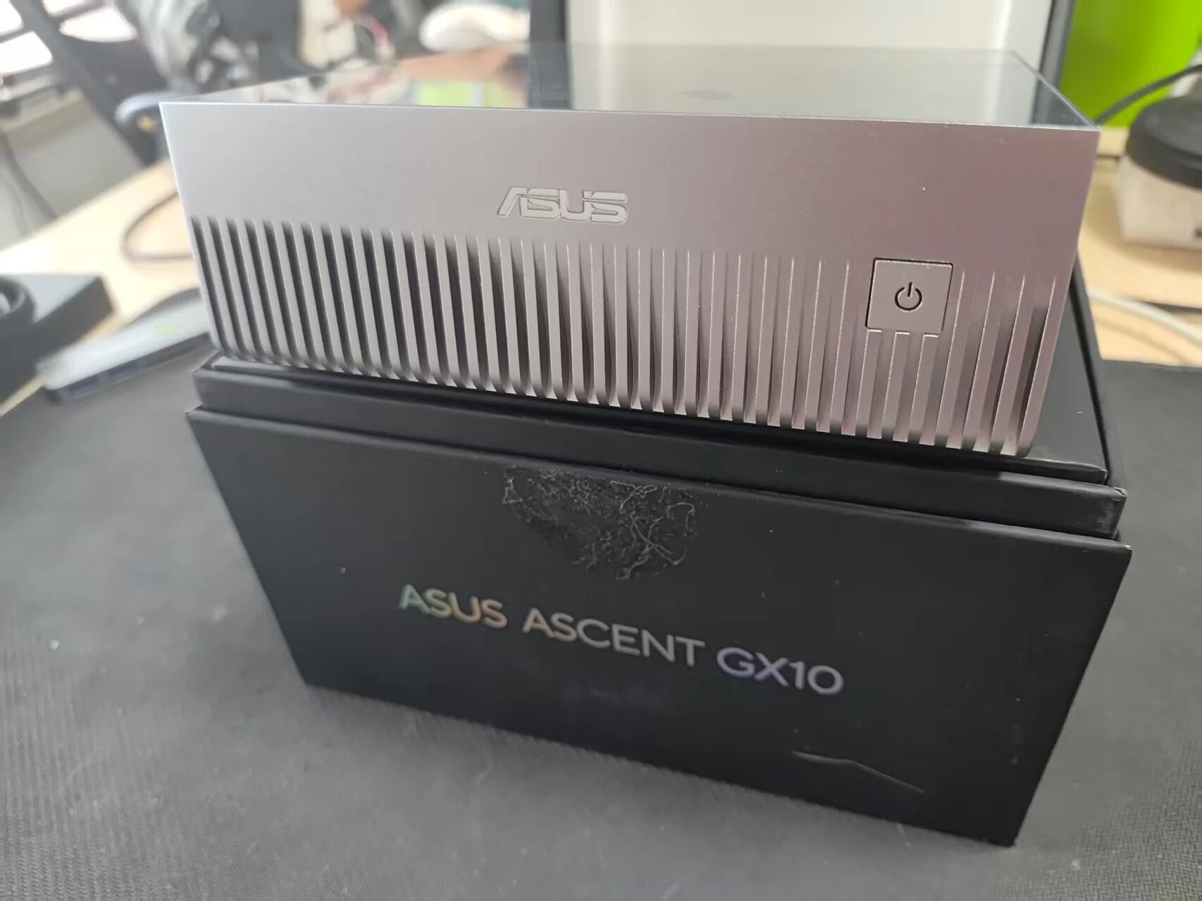 拆开包装的瞬间,ASUS Ascent GX10的深灰色长方体轮廓便以极简主义姿态映入眼帘。这款定位高端的电子设备通过精准的线条语言与材质工艺,诠释了华硕对“科技服务于人”的深刻理解。
