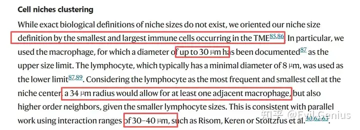 and corresponds to the size of the radius of a lymphocyte added to the diameter of a large macrophage.