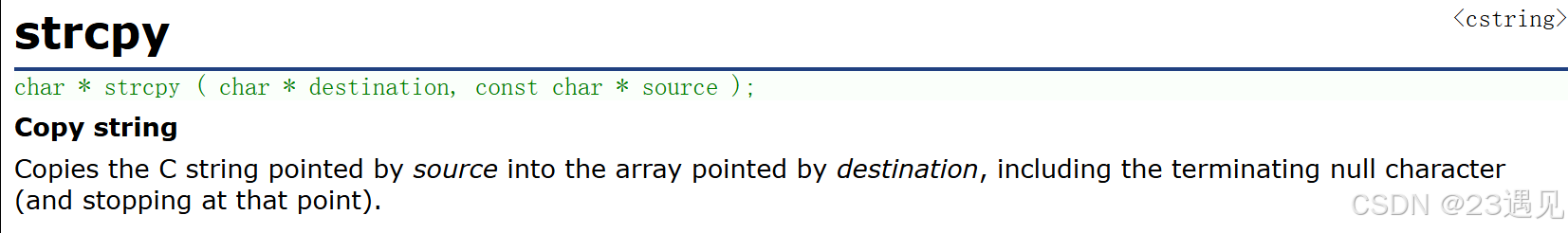 }1.源字符串必须以'\0'结束。 2.会将源字符串中的'\0'拷贝到目标空间。 3.目标空间必须足够大,以确保能存放源字符串。 4.目标空间必须被修改。 5.需要包含头文件string.h。