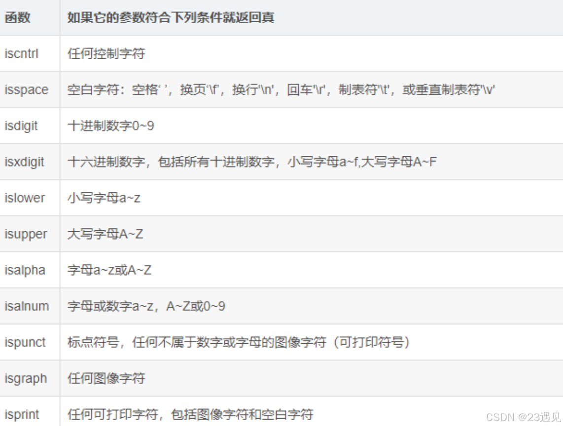 C语言中有一系列的函数是专门做字符分类的,也就是一个字符是属于什么类型的字符。