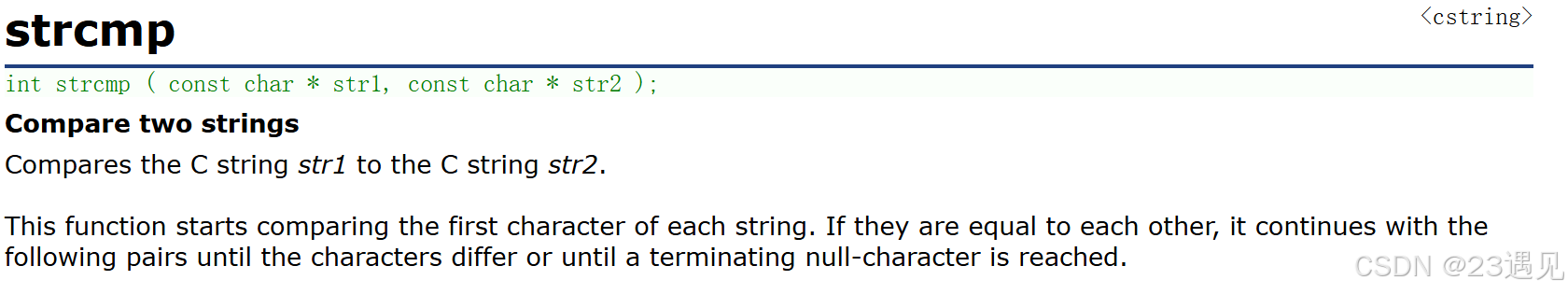 如何判断两个字符串:比较两个字符串中对应位置上字符的ASCII码值。 标准规定: 1.第一个字符串大于第二个字符串,则返回大于0的数字 2.第一个字符串等于第二个字符串,则返回0 3.第一个字符串小于第二个字符串,则返回小于0的数字