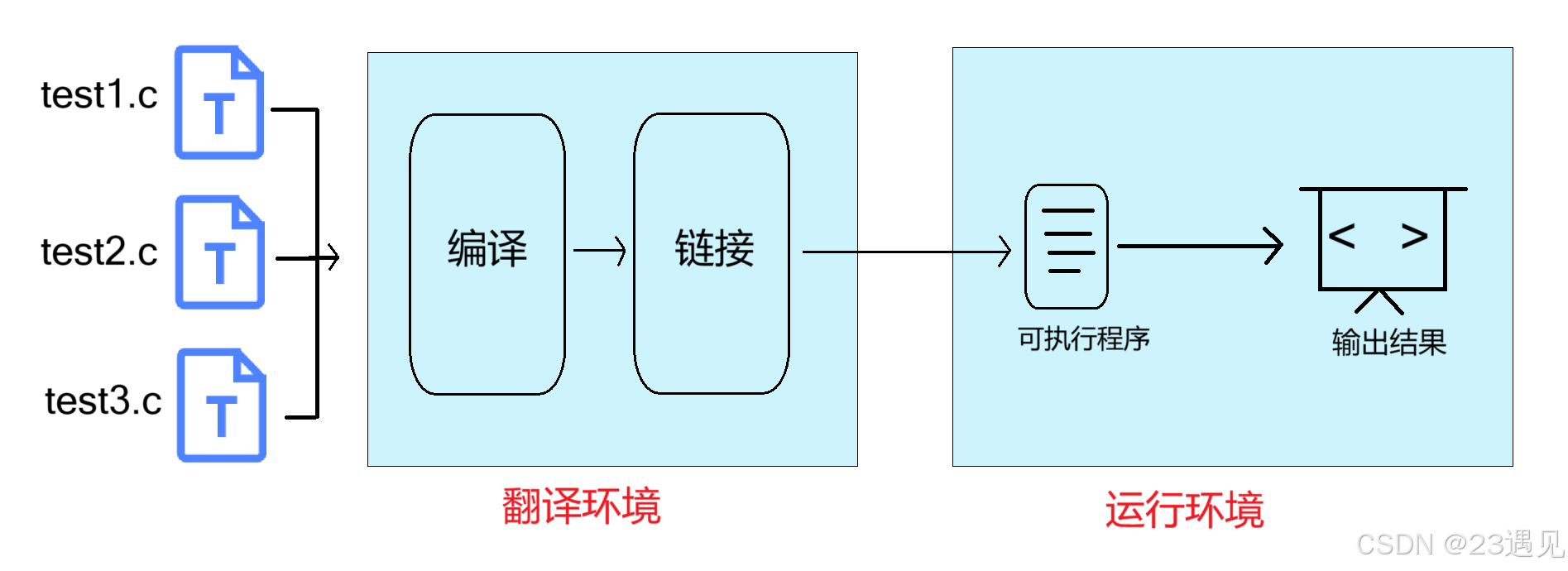第一种是翻译环境,在这个环境中源代码被转换为可执行的机器指令(二进制指令)。