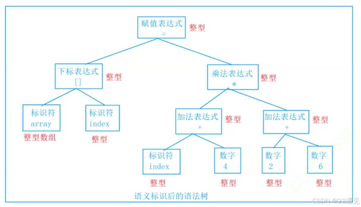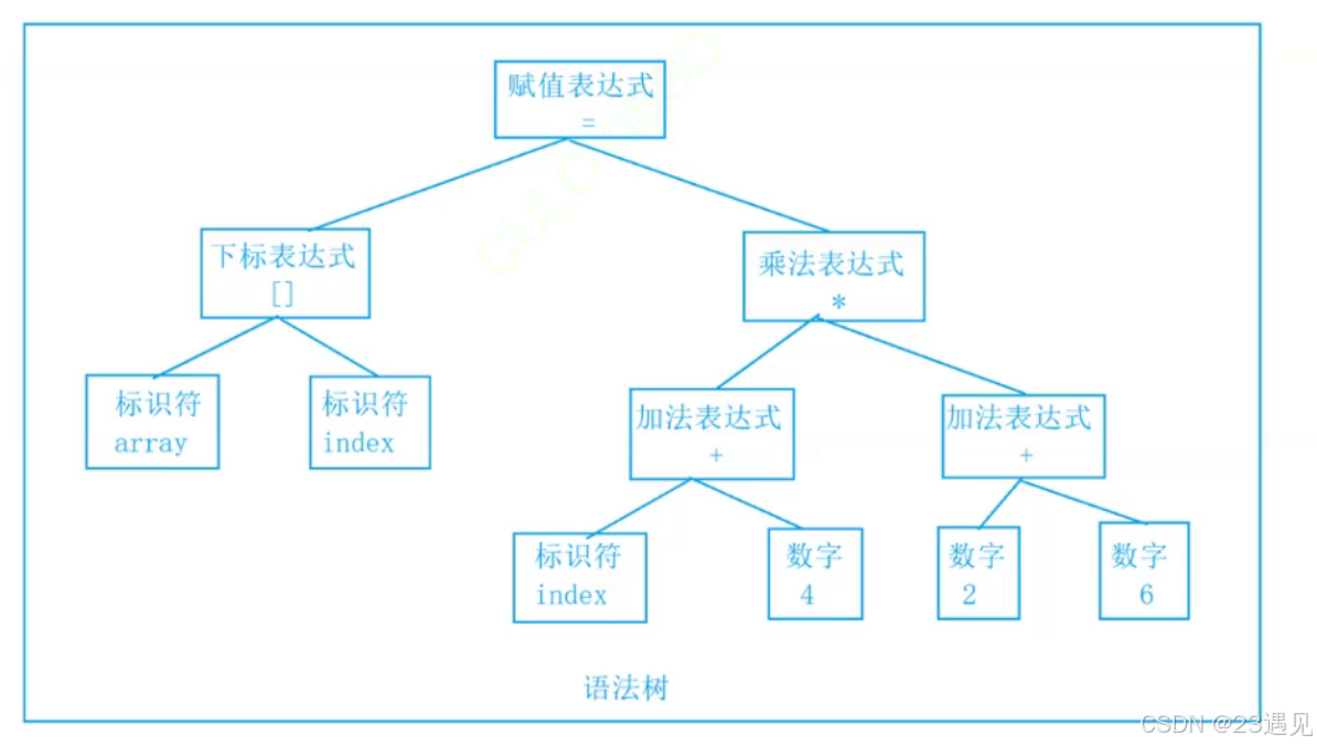 语法分析器将对扫描产生的记号进行语法分析,从而产生语法树。这些语法树是以表达式为节点的树。