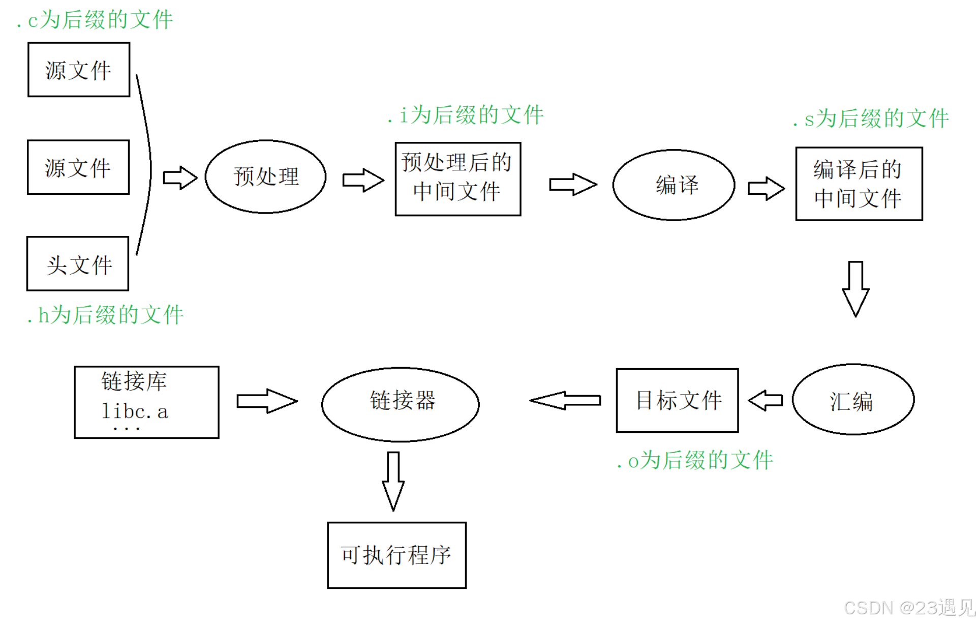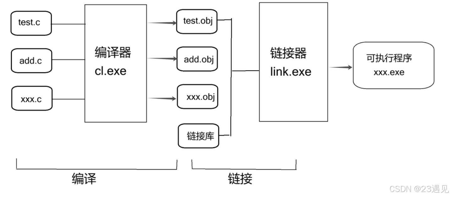 若把编译器展开成3个过程(以gcc为例,Windows原理一样):