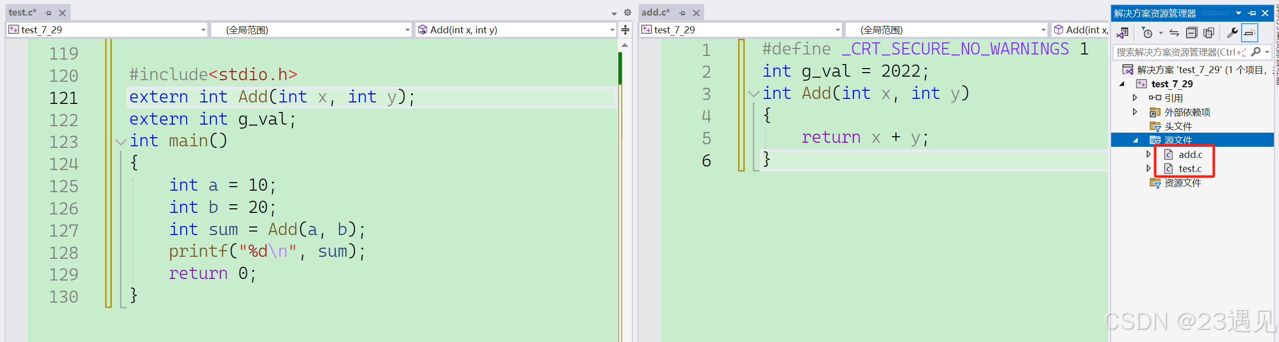 链接解决的是一个项目中多文件、多模块之间互相调用的问题。比如:在一个C的项目中有2个.c文件(test.c和 add.c),如下: