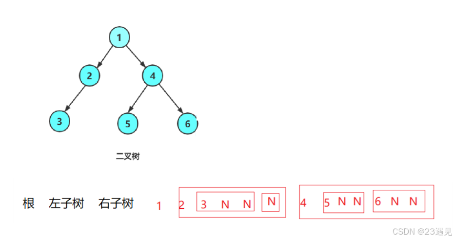 // 前序遍历空用N表示