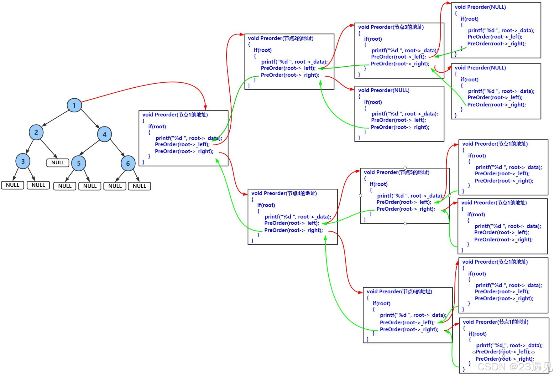 void PrevOrder(BTNode* root)