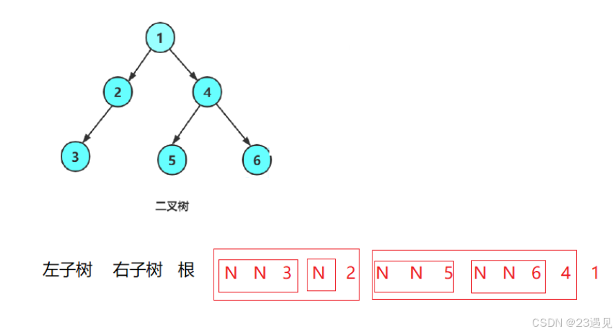 }后序遍历(Postorder Traversal)——左子树、右子树、根。空用N表示。