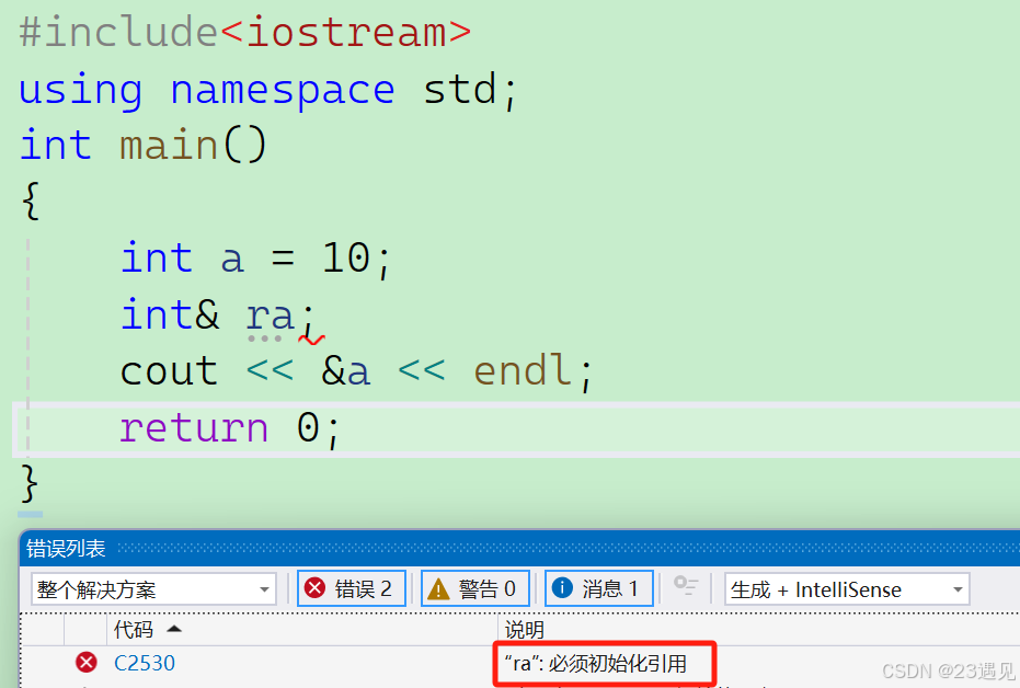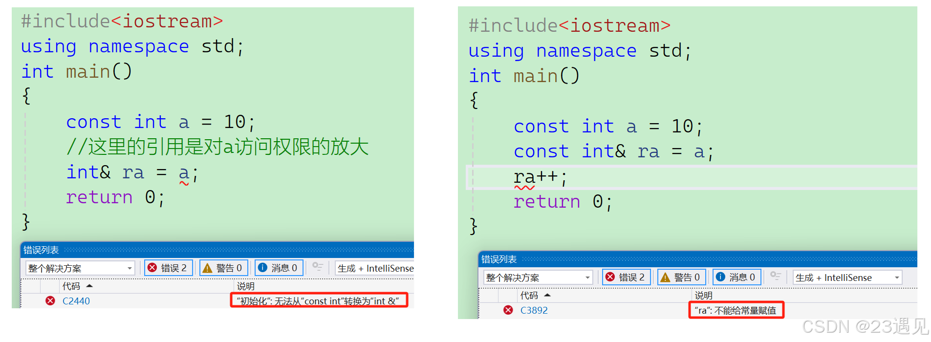 const int& ra = a;//a和ra的地址一样,权限不一样