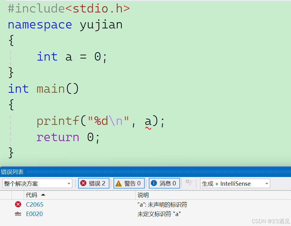 printf("%d\n", yujian::rand);//指定yujian命名空间中的rand;::是域作用限制符