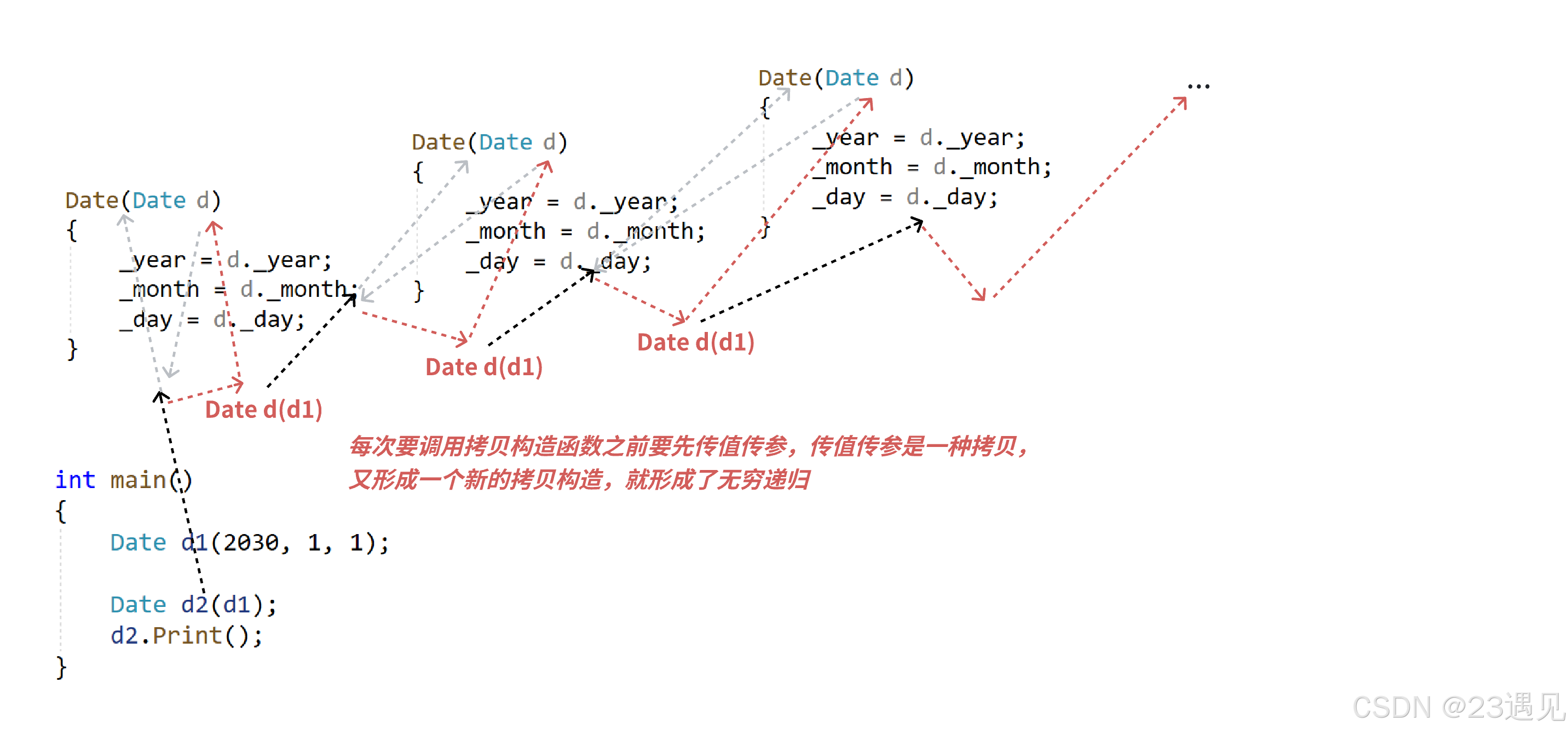 // Date(Date d) -- 编译报错:error C2652: “Date”: 非法的复制构造函数: 第一个参数不应是“Date”