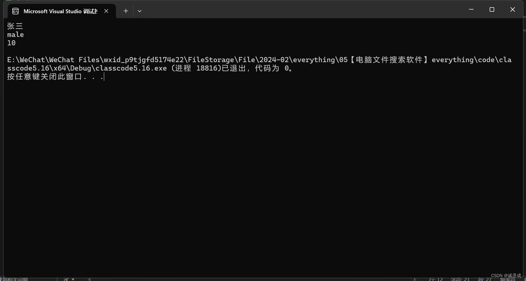 此处我们需要引入操作符点操作符——.,具体引用方法为结构体变量+.+成员名,打印方法如下。