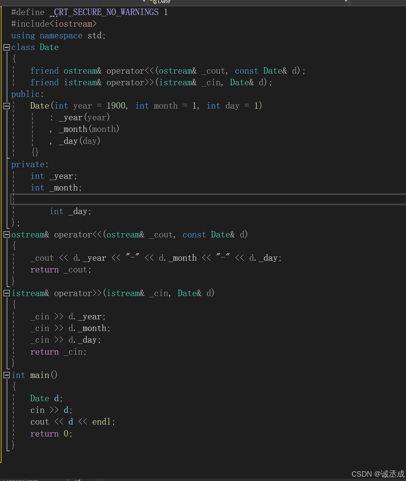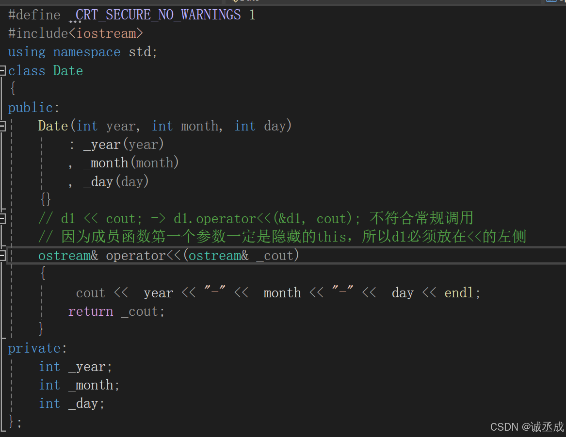 现在尝试去重载operator<<,会发现编译报错。这是因为因为cout的输出流对象和隐含的this指针在抢占第一个参数的位置。this指针默认是第一个参数也就是左操作数了。但是实际使用 中cout需要是第一个形参对象,才能正常使用。所以要将operator<<重载为全局函数,但又会导致类外无法访问成员,因此需要用友元来解决,重载operator>>同理。
