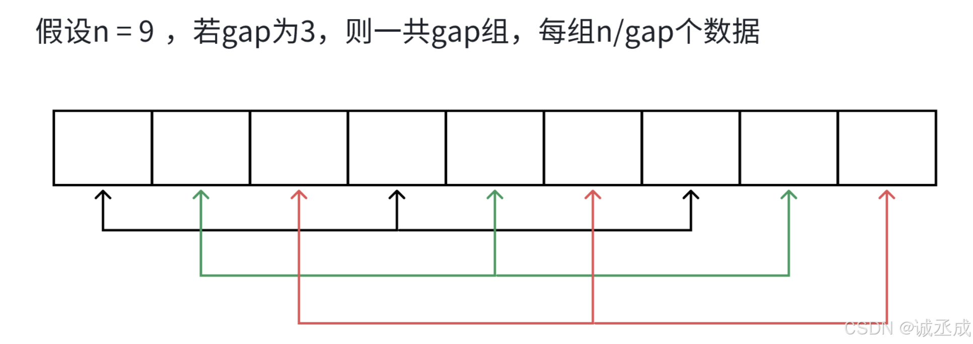 假设⼀共有n个数据,合计gap组,则每组为n/gap(大致)个;在每组中,插⼊移动的次数最坏的情况下为 S=1 + 2 + 3 + ……+ (n/gap-1),⼀共是gap组,因此: