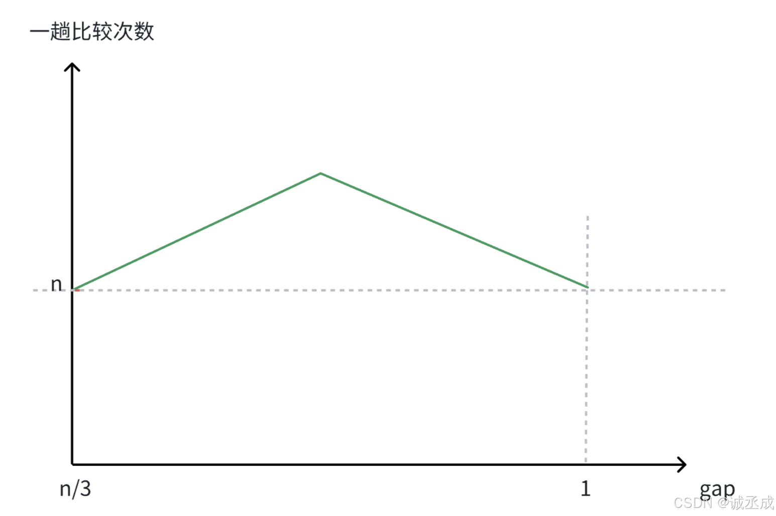 gap取值有(以除3为例):n/3 n/9 n/27 … 2 1