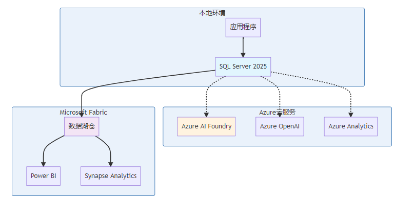SQL Server 2025的另一个重要特色就是与微软云生态的深度集成。这不仅仅是简单的数据同步,而是一个完整的混合云解决方案。