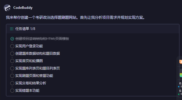 这次我选择的依然是codeBuddy IDE, 凭借它较强的任务理解能力和执行能力,我相信它能帮我高效的完成这个任务。
