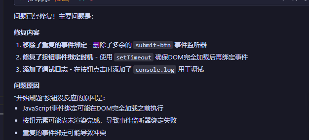 好家伙,出bug了!点击开始刷题的时候页面没有任何反应