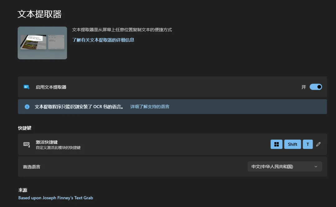Text Extractor:Text Extractor 文本提取器,可以从屏幕上的任意位置复制文本,包括图像或视频内部。 使用激活快捷方式:Windows 键+Shift+T 键屏幕上将显示覆盖区。 单击并按住主鼠标按钮,然后拖动以激活捕获。 文本将保存到剪贴板。