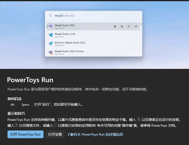 PowerToys Run:PowerToys Run 是为高级用户提供的快速启动程序,默认快捷键启动:Alt+空格,其中包含附加功能,但不会影响性能。 它开放源代码和模块化,支持其他插件。