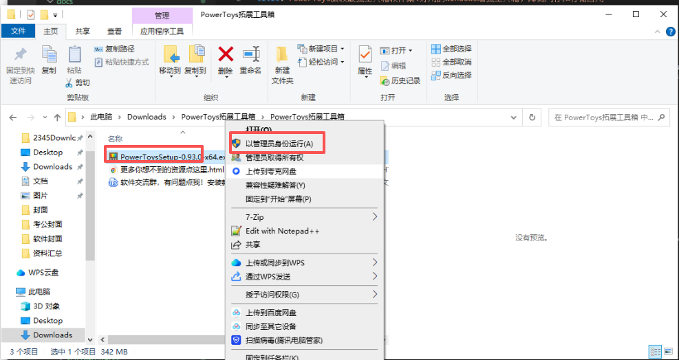 3.选中【PowerToys...】右键【以管理员的身份运行】,如图