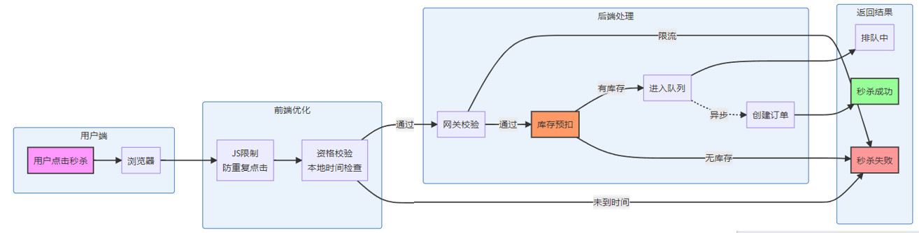 接下来看看用户点击"秒杀"按钮后,系统是如何处理的: