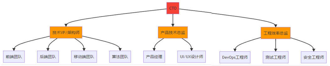 这个组织架构图显示了现代技术团队的三大支柱:技术开发、产品技术、工程效率。CTO需要确保这三个方向都有得力的负责人。