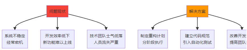 某电商公司CTO接手时,系统已经积累了大量技术债务: