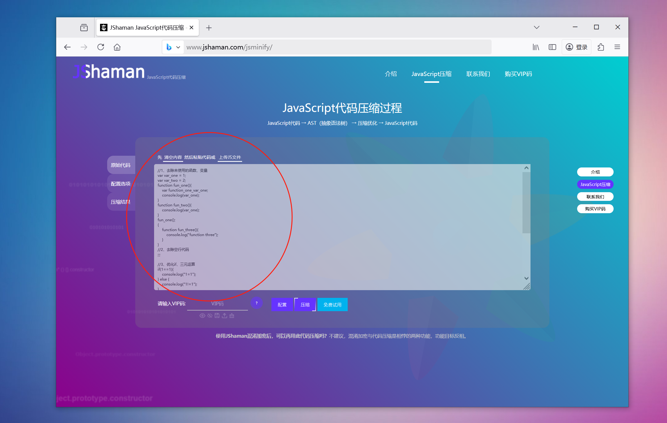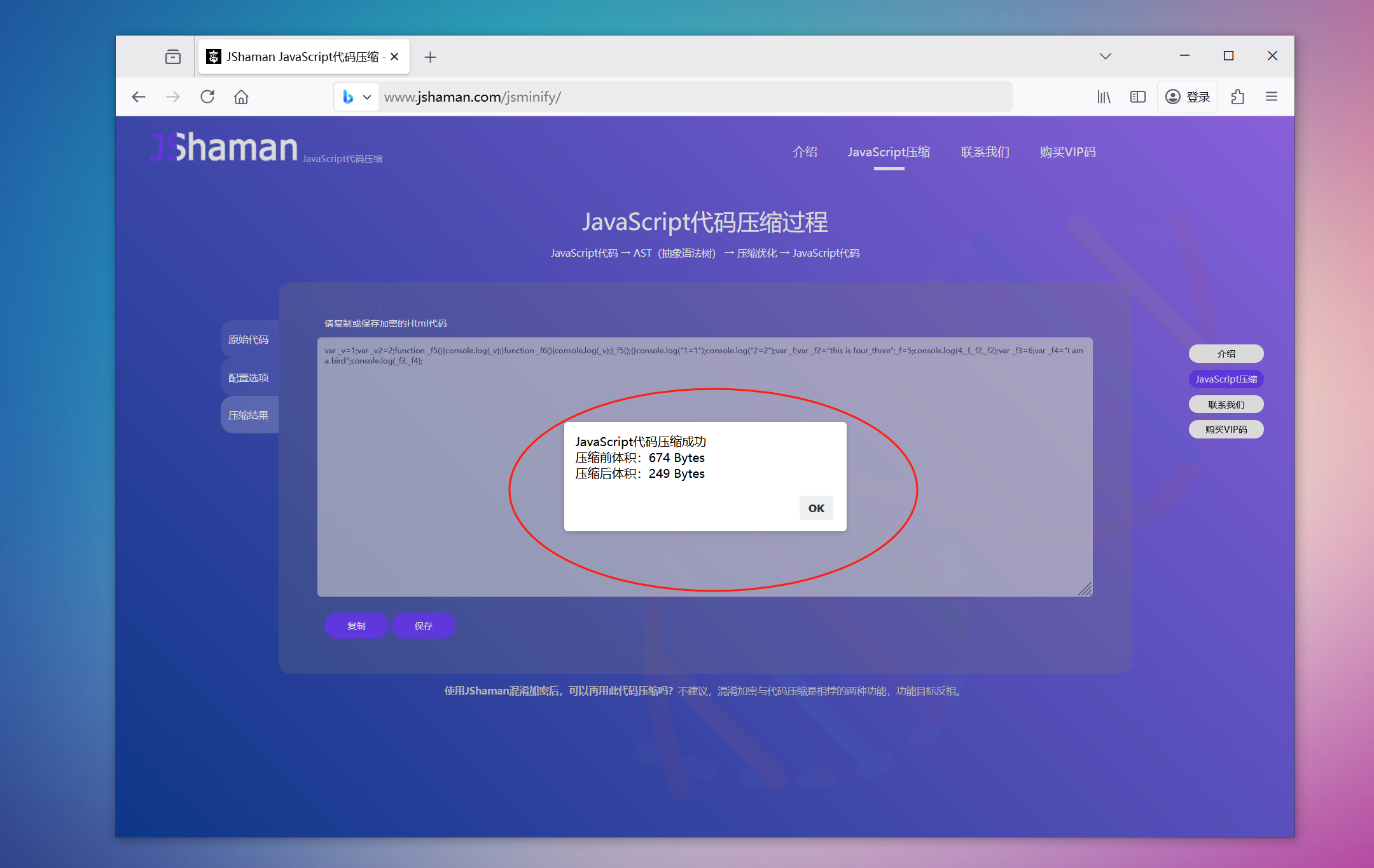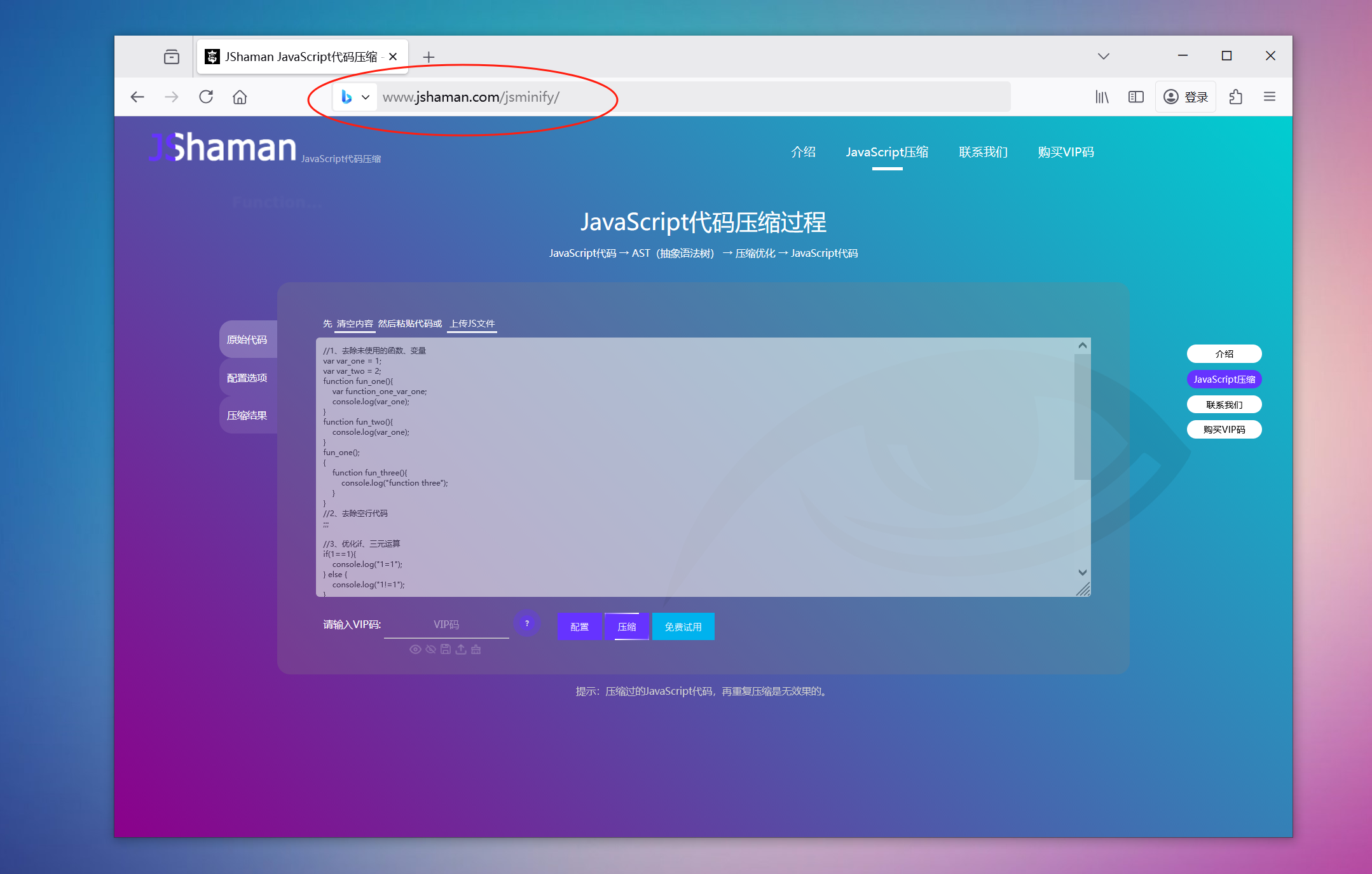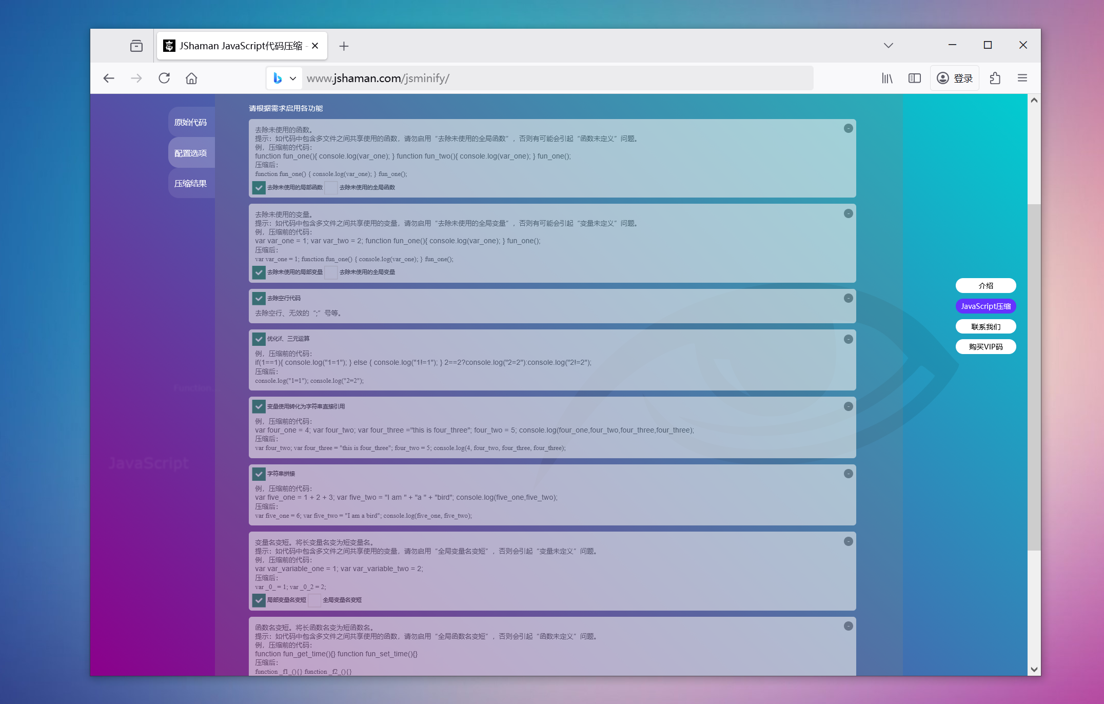 众所周知,JShaman是国内JS混淆加密界的知名厂商。所以他们出品的JS压缩工具,品质信的过。