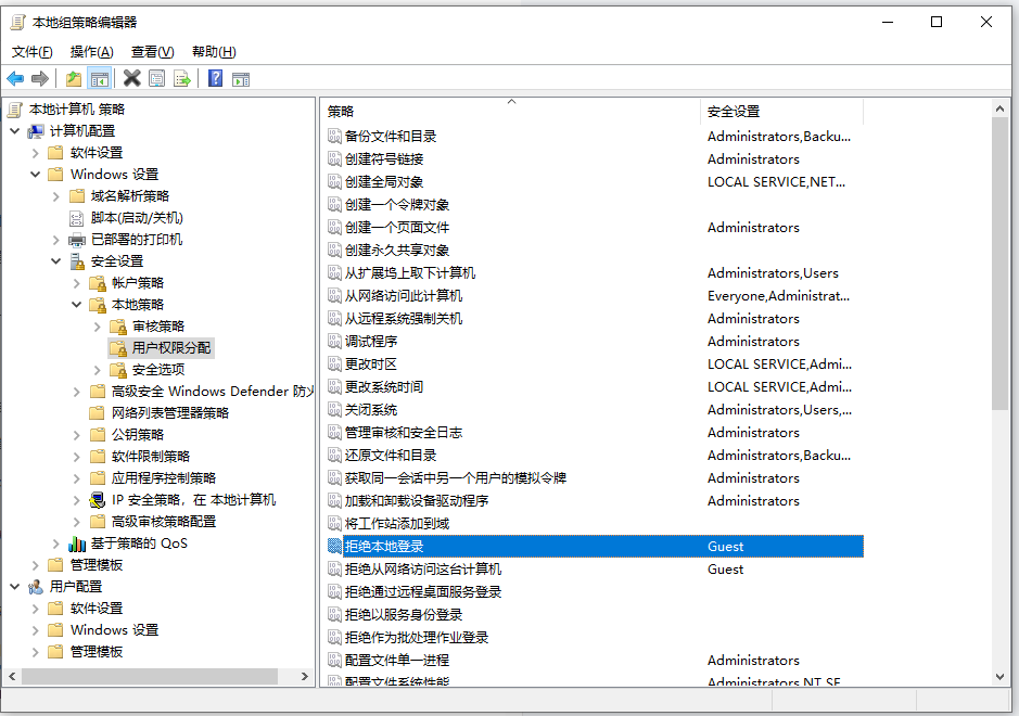 具体操作很简单:打开"组策略编辑器",在"计算机配置"→"Windows设置"→"安全设置"→"本地策略"→"用户权限分配"中,找到"拒绝本地登录"策略,添加需要限制的用户组;