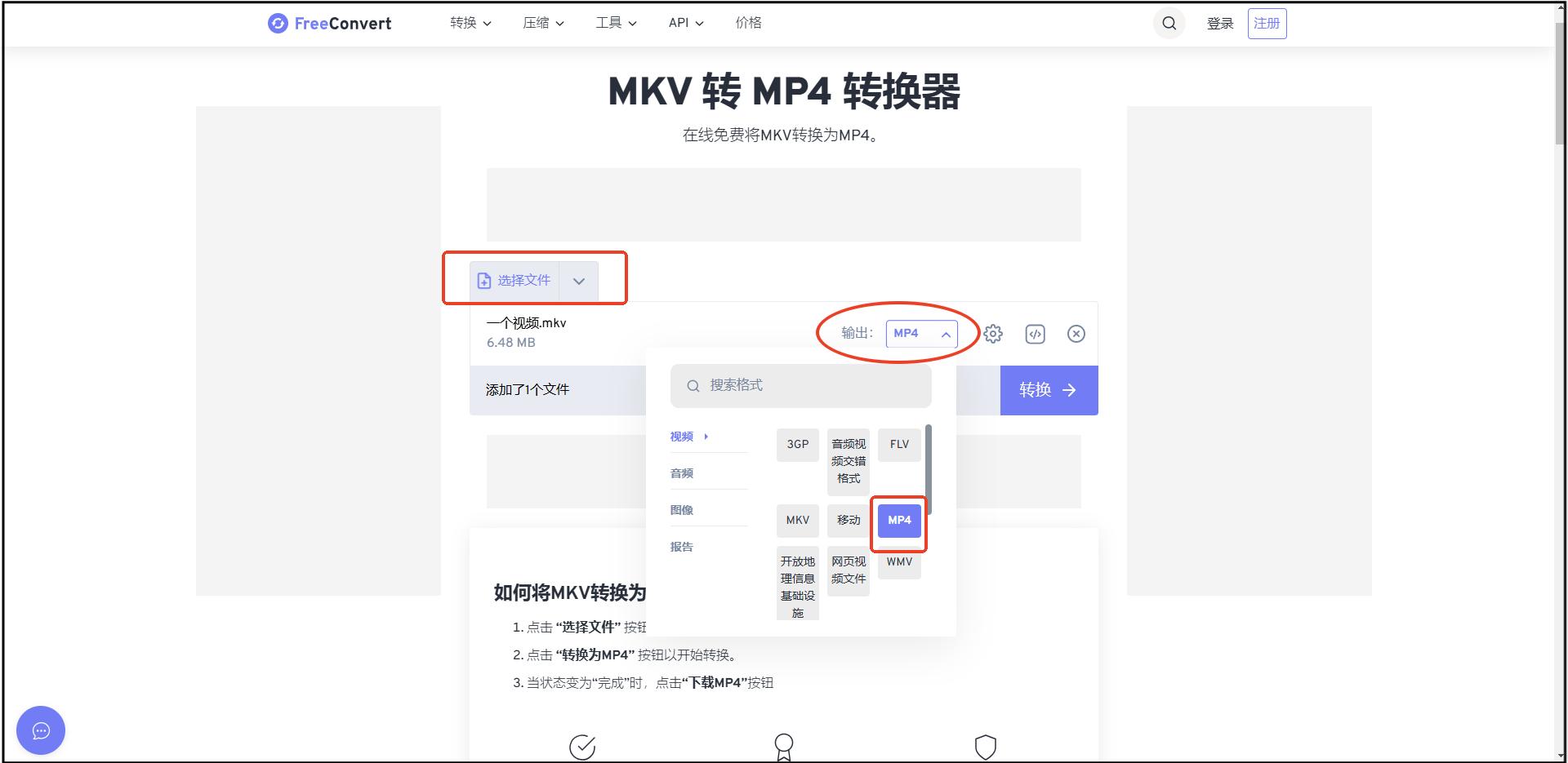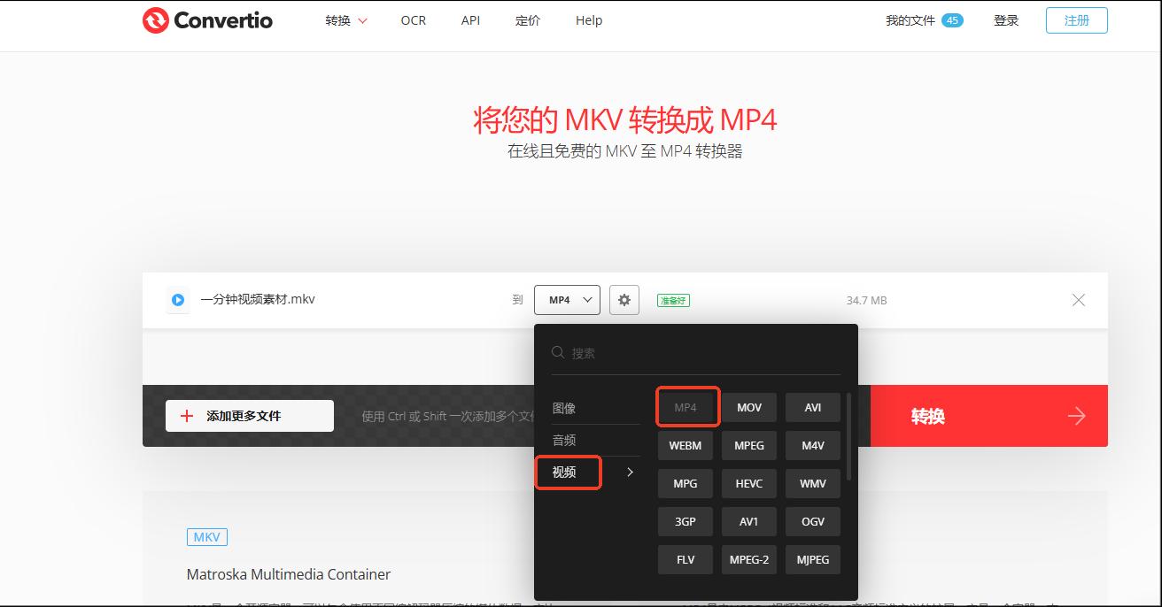 只需在网页上传MKV文件、选择转换为MP4格式,点击转换按钮,稍等片刻就能完成格式转换。