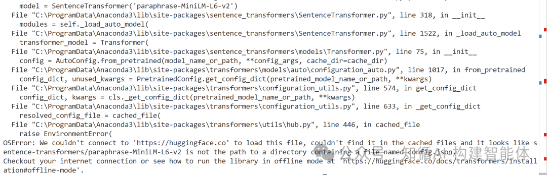 今天在加载嵌入模型时,提示了异常OSError: We couldn't connect to 'https://huggingface.co' to load this file,大模型无法下载,提示是要从huggingface中下载模型,由于网络限制无法下载,于是考虑ModelScope中是否也可以找到此模型