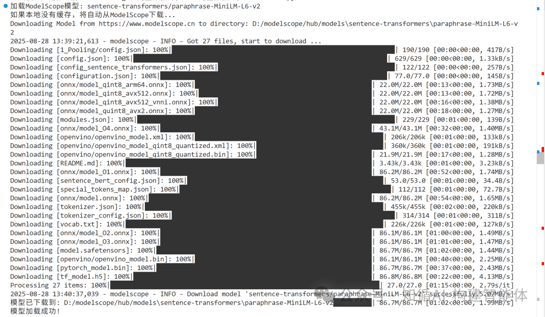 Downloading Model from ModelScope 魔搭社区 to directory: D:/modelscope/hub/models\sentence-transformers\all-MiniLM-L6-v2