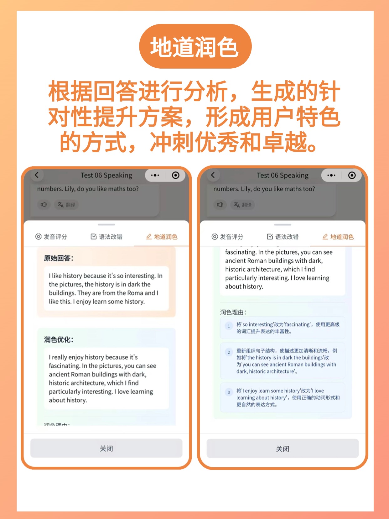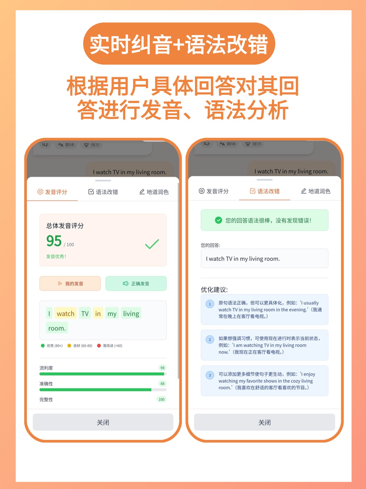 实时将用户录音转化为文字,清晰呈现发音模糊、识别错误的词汇,方便自查表达准确性。