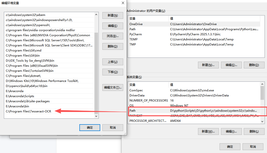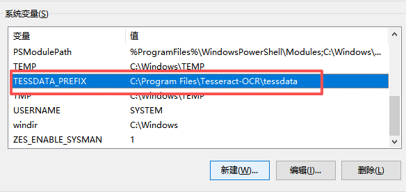 新建一个TESSDATA的环境变量,将数据集的文件夹路径放进来
