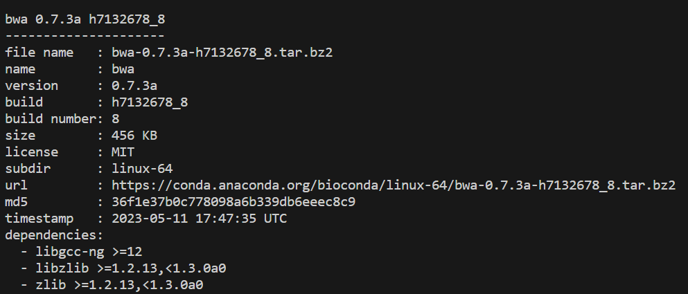 命令查看在搜索和安装包时会按顺序查找哪些频道。Conda的频道十分多,当你发现有个软件安装失败的时候,你可以搜寻拥有这个软件的频道,以bwa软件为例: