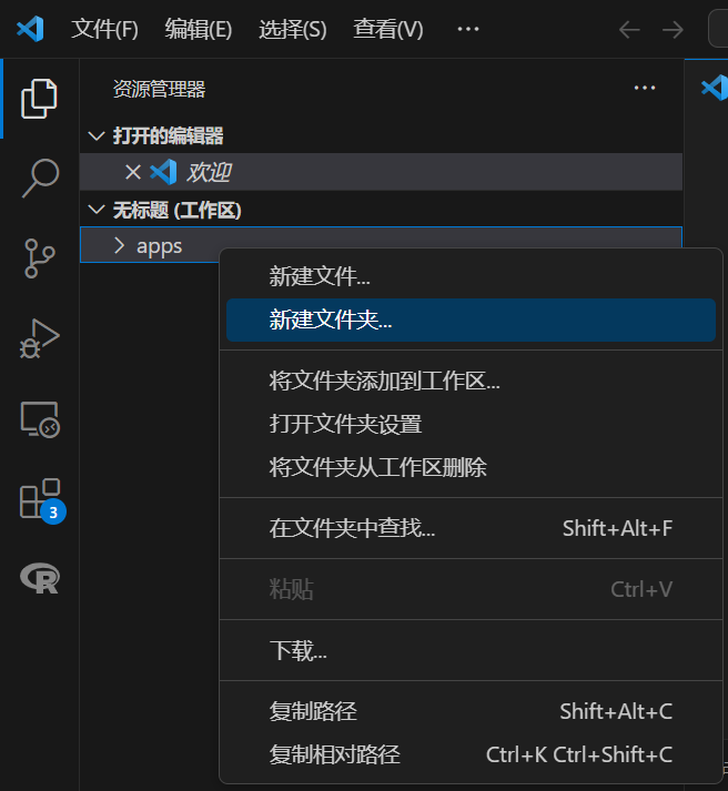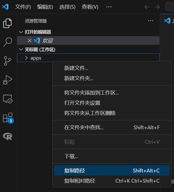 在vscode中右击安装包在的文件夹,复制路径。之后,我们打开终端,在这里我们可以输入代码行来进行linux的操作。