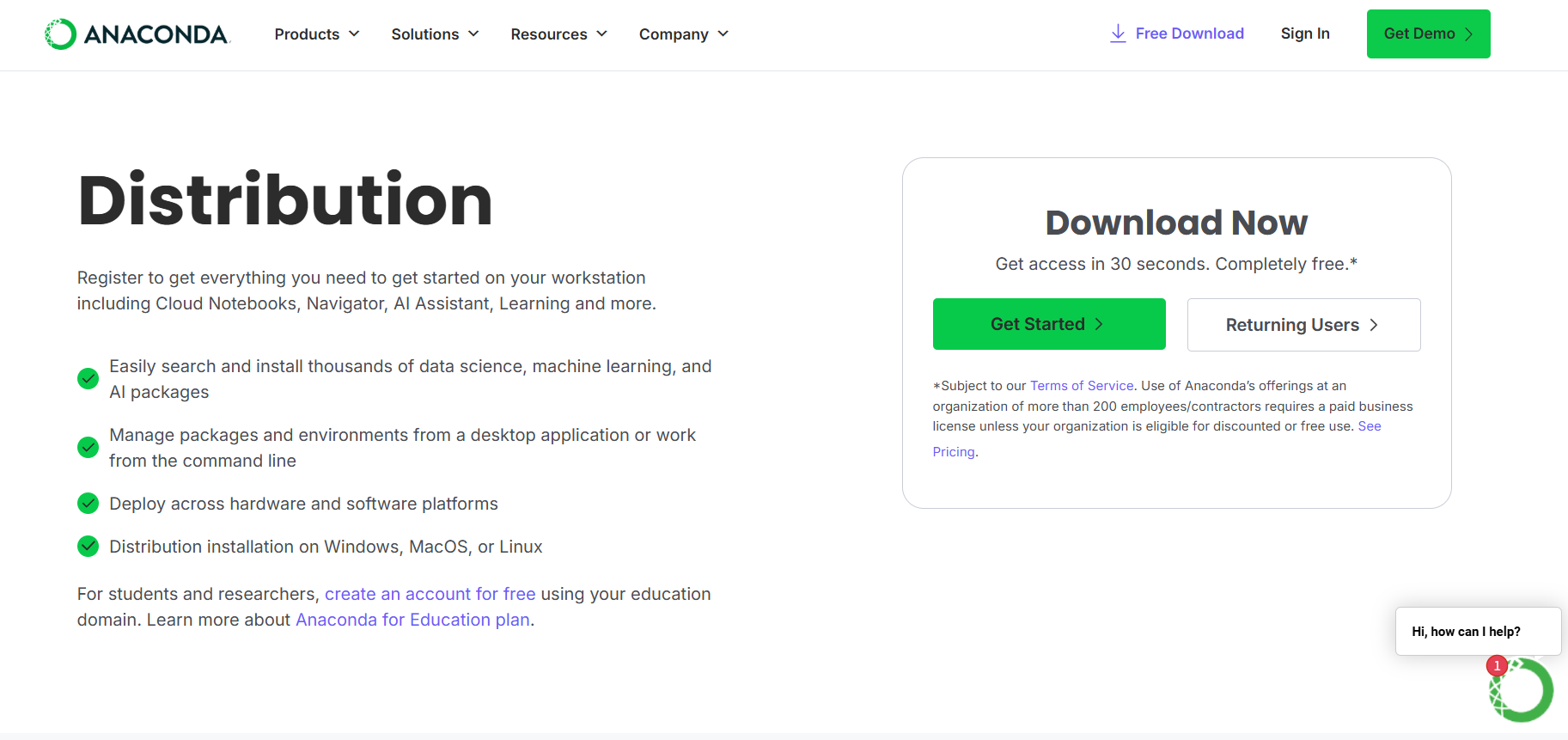 或者下载最新文件,在https://www.anaconda.com/download下载页面点击get started。注册后登录下载Linux对应的sh文件。
