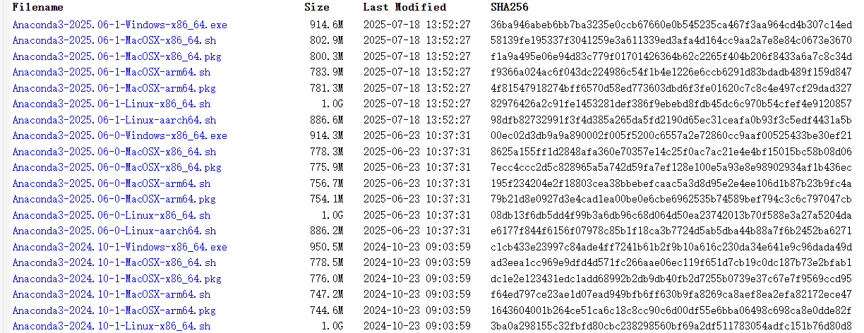 在https://repo.anaconda.com/archive/我们可以寻找到很多conda包,下载最新的就可以。