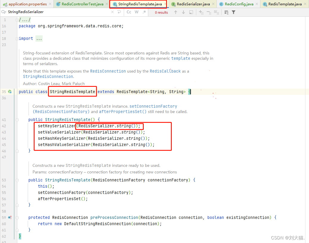 StringRedisTemplate 是继承 RedisTemplate的,一般来说子类继承父类,应该能实现更多的功能,但是此处我们发现 StringRedisTemplate 继承的是 RedisTemplate的泛型类,指定了String-String的泛型!故功能只专注于String类型!