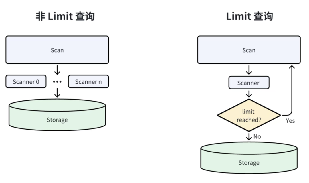 LIMIT 查询的核心需求是 “获取前 N 行数据”,Doris 通过 “提前停止数据读取” 避免无用计算,分两种场景优化。