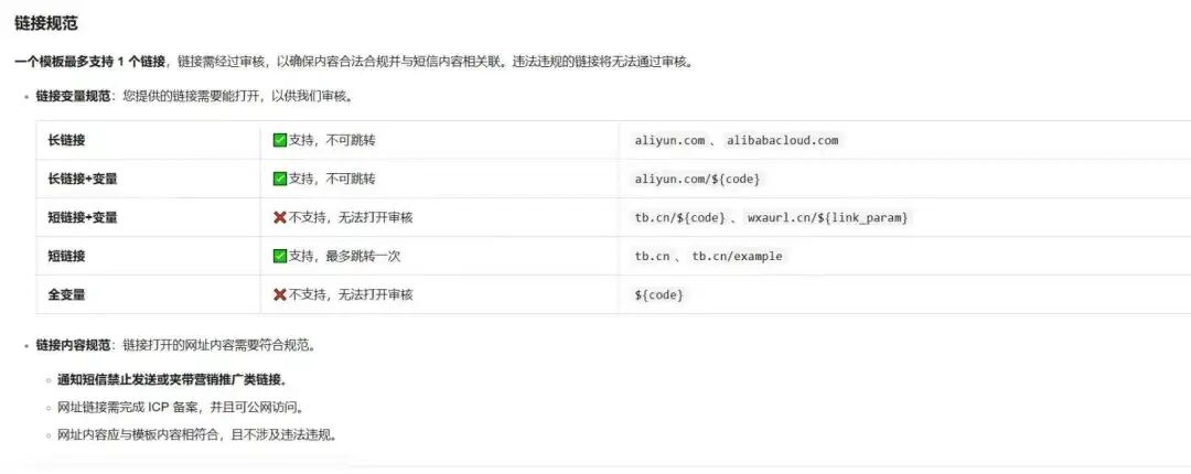 比如腾讯短信,目前因腾讯模板审核标准更新,短信发送时不再支持以链接或短链作为参数。