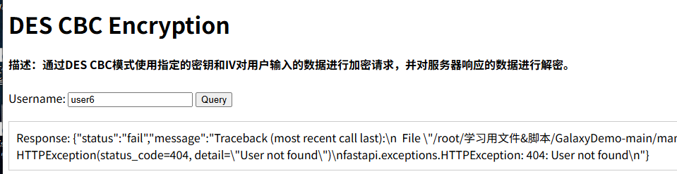 我们进入第一个,打开burp进行抓包,这一关目的是要我们获取到user6的信息,但是正常我们直接发送用户6的请求是报错的,这里我们就要摸清楚加密请求,