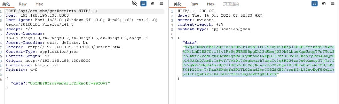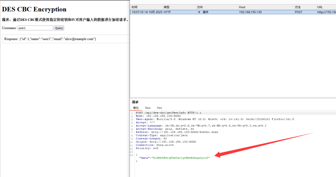 通过burp拦截发现我们的用户名请求是经过加密后的