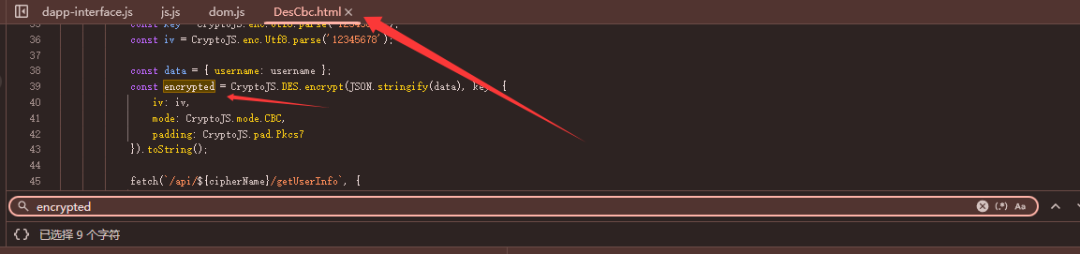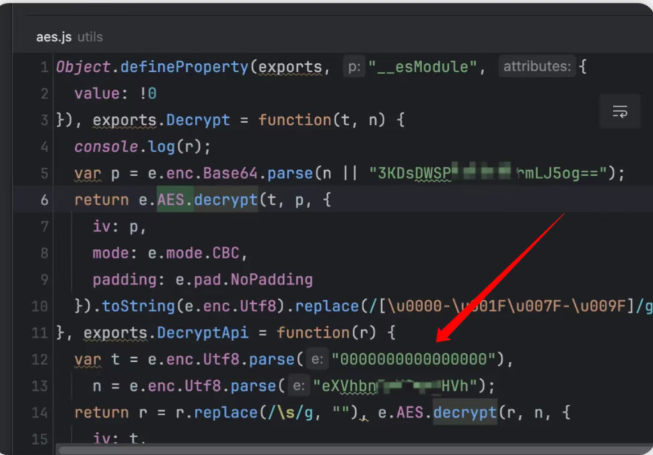 通过查看他的加密方法,找到加密的关键参数key和iv