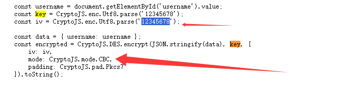 这里是通过des进行加密,key就是密码,iv一般代指偏移量,模式就是cbc